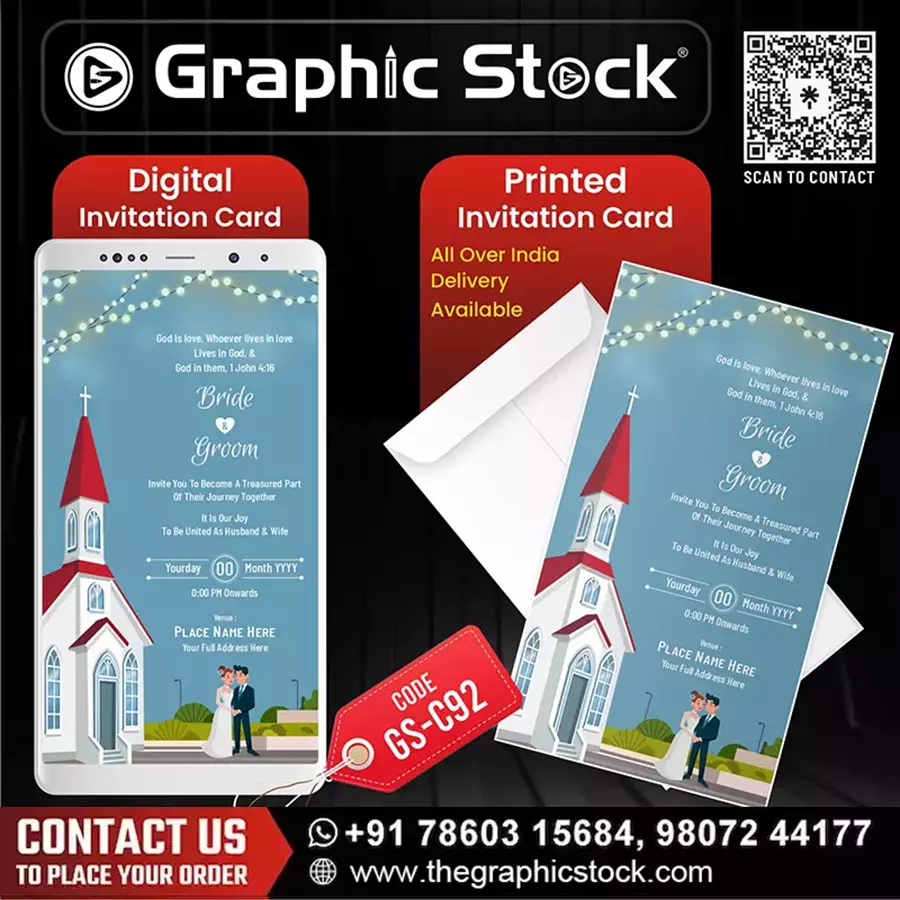 Whether you prefer the immediate convenience of a digital church wedding invite or the tangible elegance of a physical card, we offer the ultimate 2-in-1 solution tailored for you. Our collection is thoughtfully curated to meet every discerning need, making your Custom Blue Christian Wedding Card journey seamless. Every Blue Christian Church Wedding Invitation from Graphic Stock promises to be a cherished keepsake of your big day.