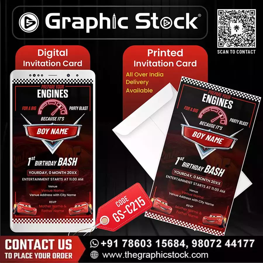 Graphic Stock is proud to be recognized as India’s No.1 Makers (भारत के नंबर 1 निर्माता). Our Car Theme Birthday Invitation Card (Designer Kids Suite, Luxury Birthday Cards) is a bestseller among parents who want quality and creativity. We combine dynamic designs with top-tier printing technology to create invitations that are truly “First Place.”