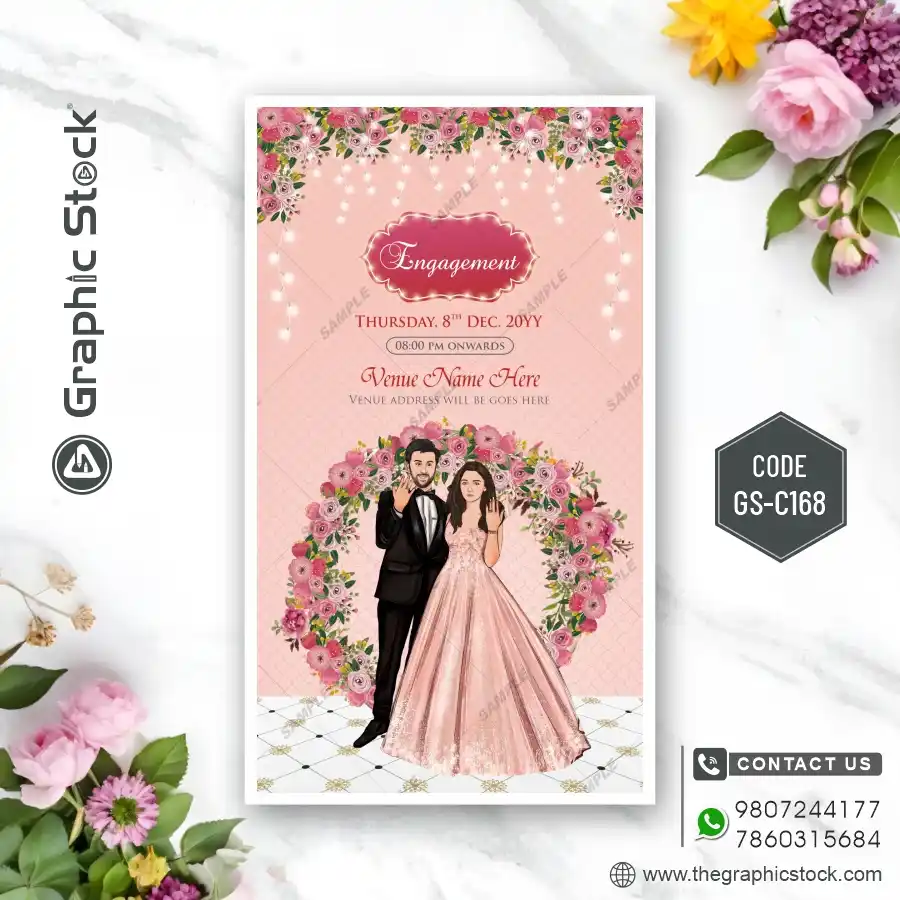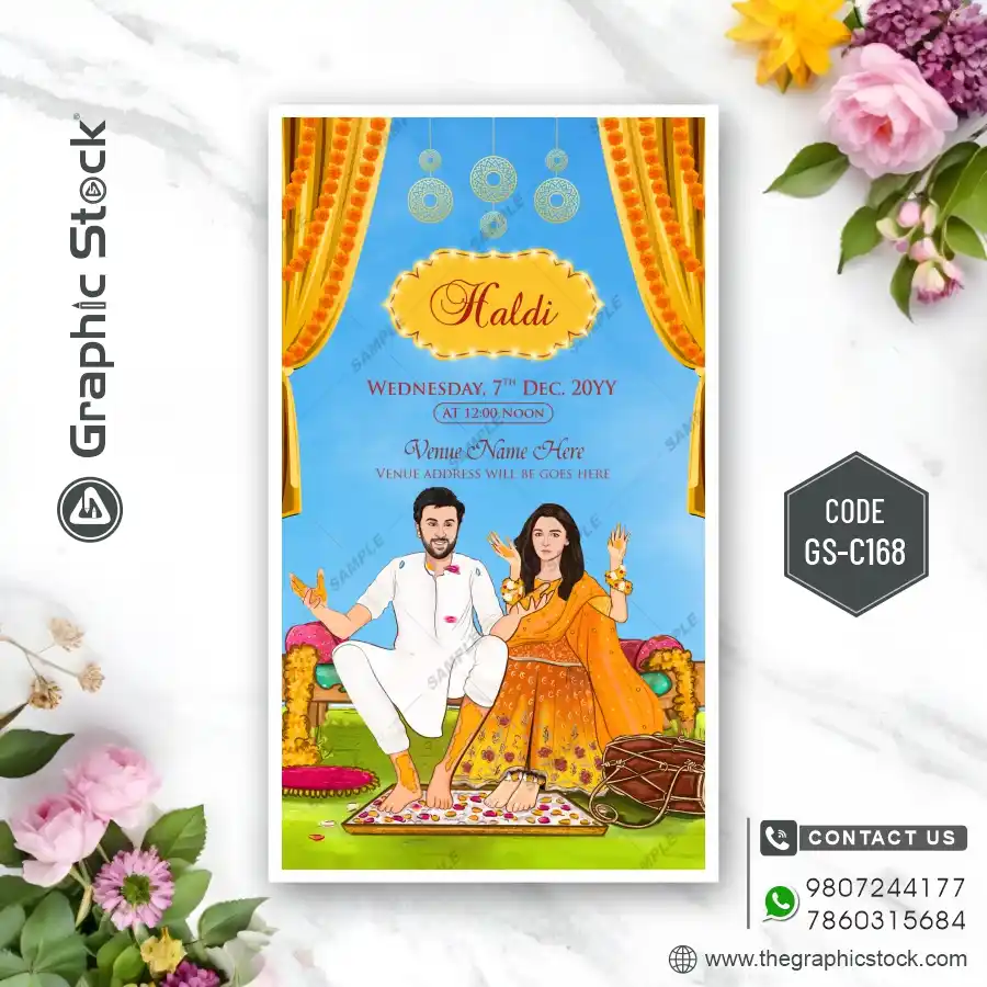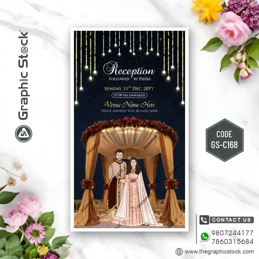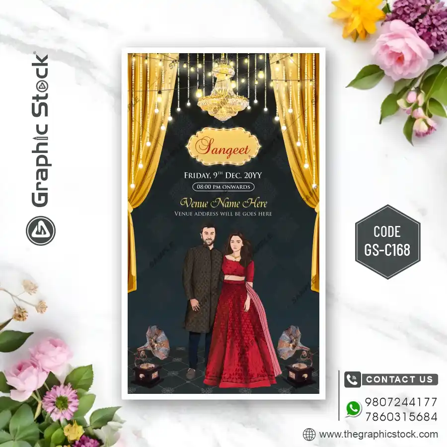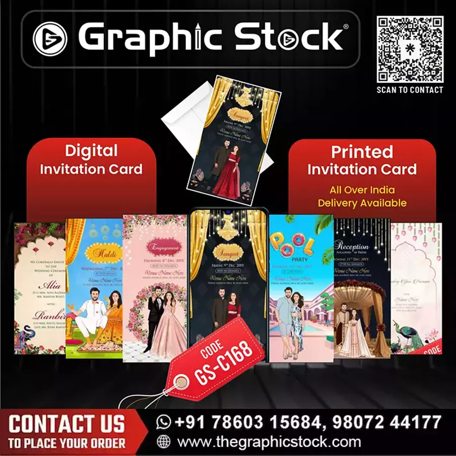 Your wedding is not just one day; it’s a beautiful journey of several memorable events, each with its own unique flavor. To celebrate this grand series of ceremonies, you need an invitation that is as unique and vibrant as your love story. Graphic Stock presents the stunning Multi-Event Caricature Wedding Invitation Card (मल्टी-इवेंट कैरिकेचर वेडिंग इनविटेशन कार्ड). Our GS-C168 design is a perfect blend of fun, creativity, and elegance, designed to make your wedding invite truly stand out.